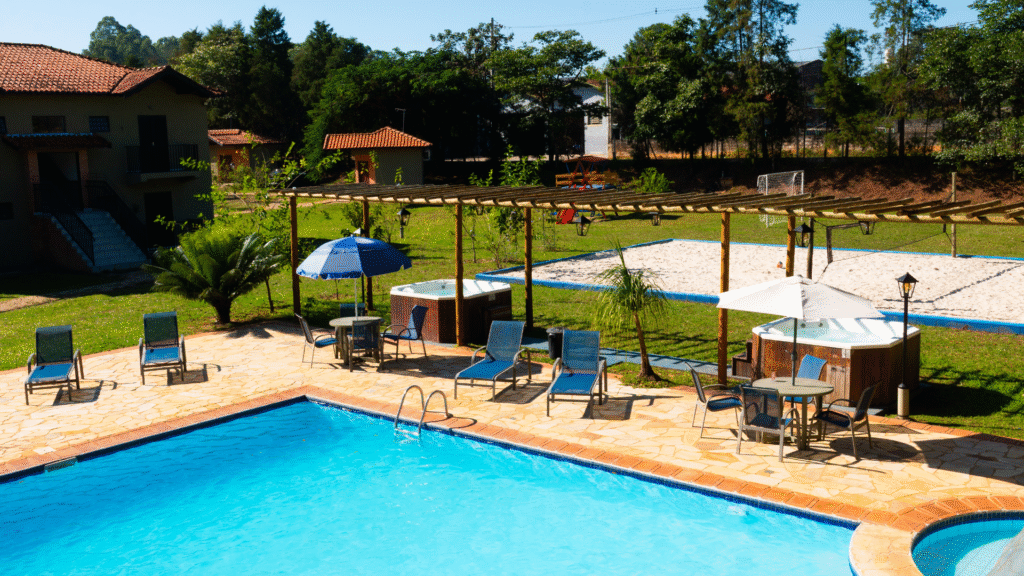 Sua infraestrutura conta com 16 quartos com diferentes layouts, uma ampla área verde de 10.000m². Agora com piscina climatizada, hidromassagens, campo, quadra de areia, brinquedoteca, salão de jogos, sauna, e nova experiência gastronômica com o restaurante Mr Sam Stallage e o Café & Wine Bar Mafalda.